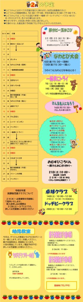 午前10時30分~午後5時 (放課後児童クラブ:午前10時30分~午後5時※延長あり)