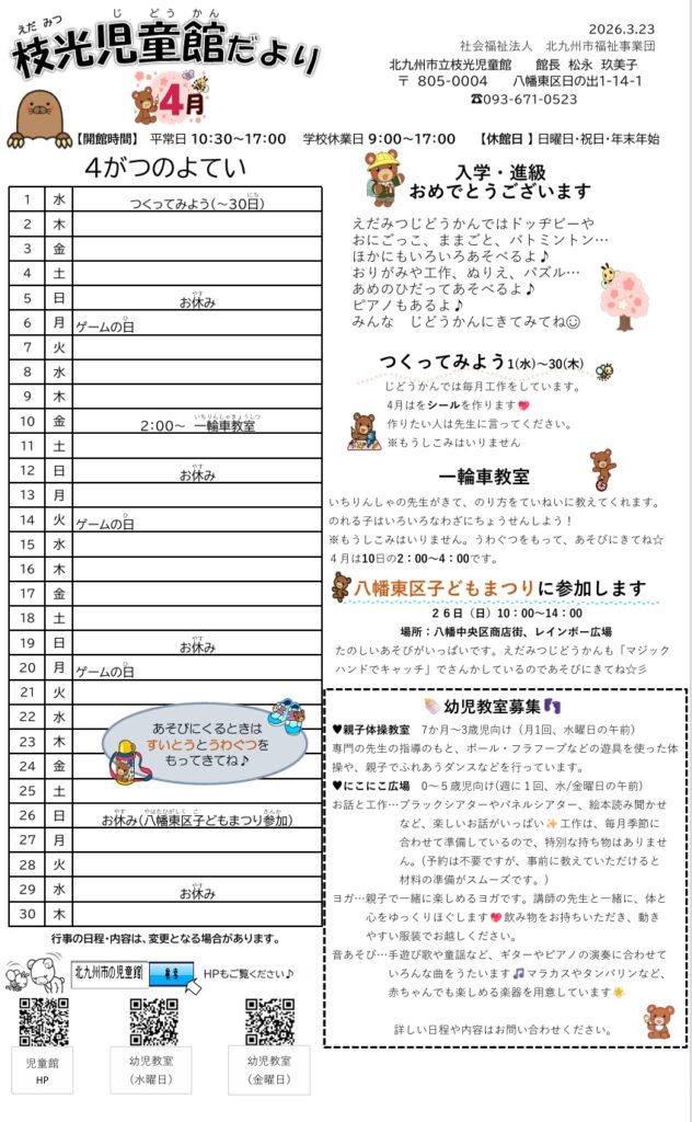 4月の予定 枝光児童館