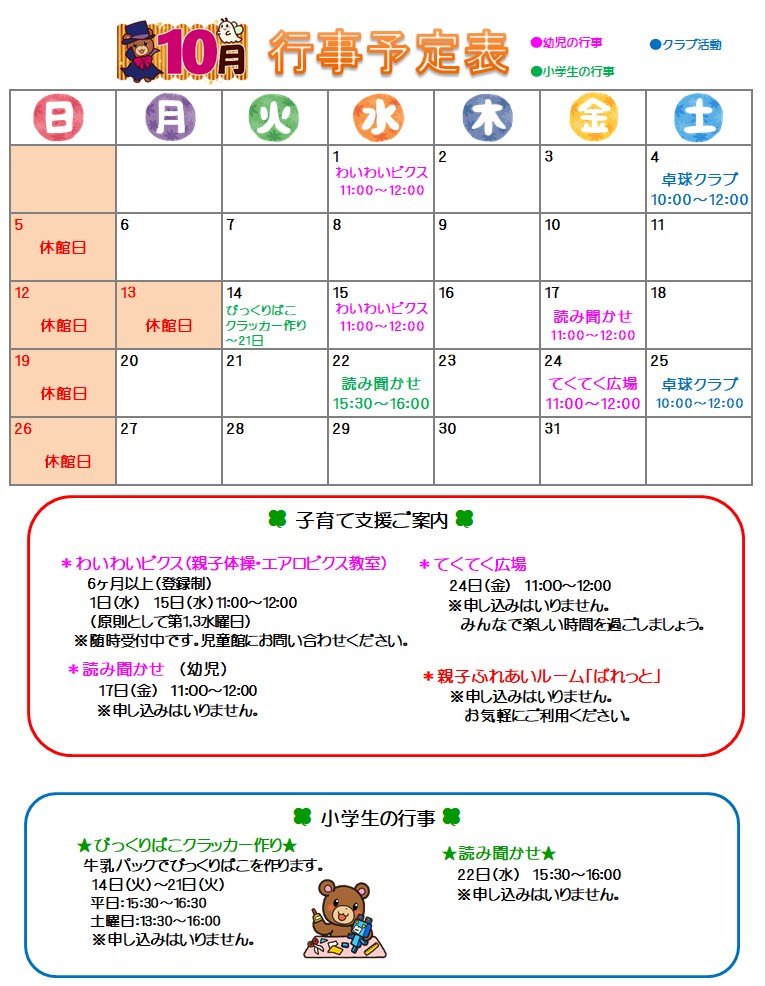 (放課後児童クラブ:午前10時30分~午後5時※延長あり)