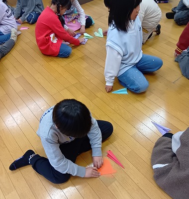 紙ヒコーキを作って、ゆうぎ室で飛ばしてみました