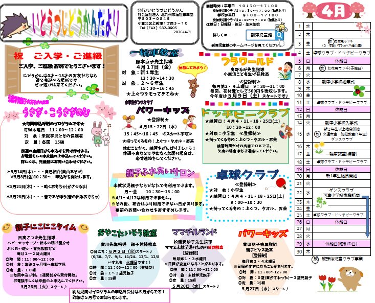 到津児童館 4月のおたより