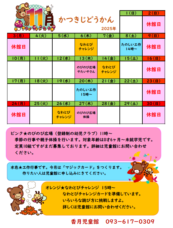 かつきじどうかん 11がつのよてい
