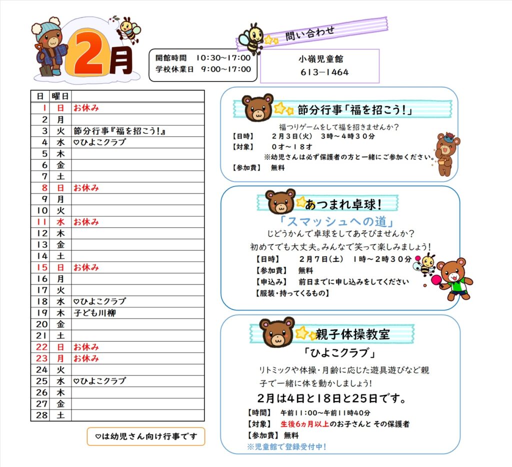 小嶺児童館 2月の予定