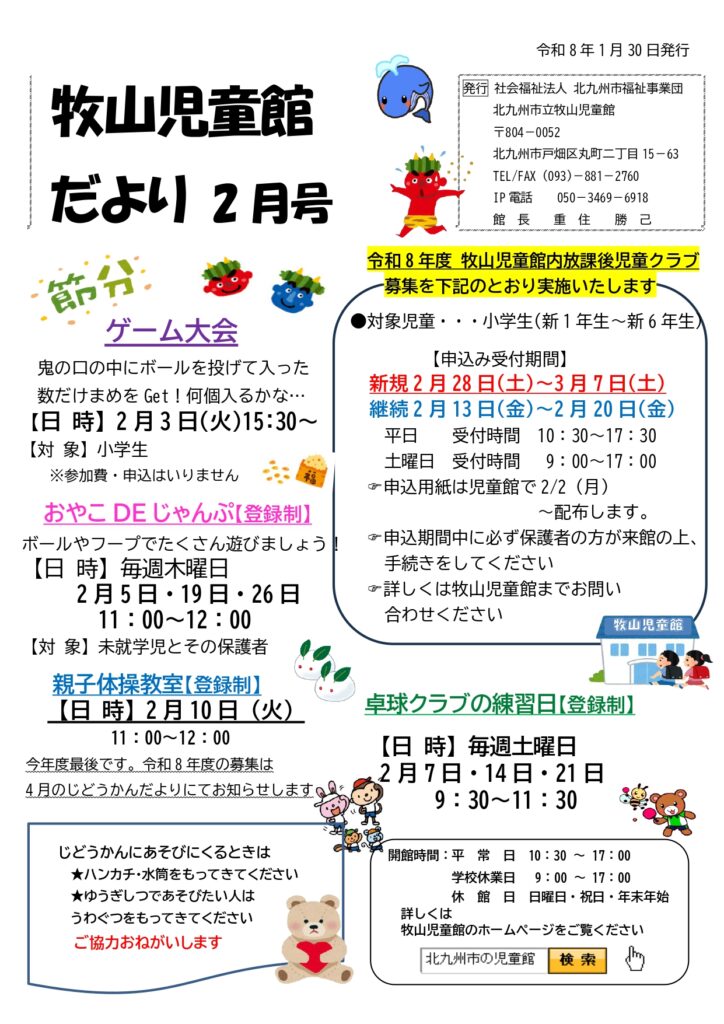 牧山児童館だより2月号