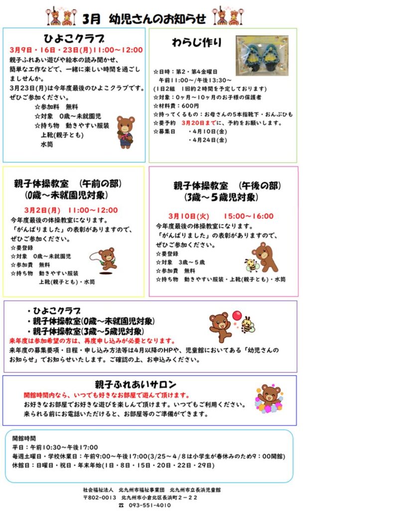 3月の幼児さんの行事予定です。