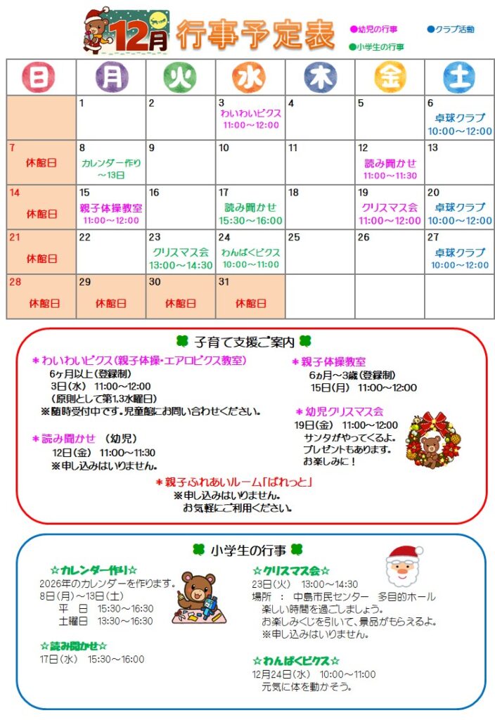 (放課後児童クラブ:午前10時30分~午後5時※延長あり)