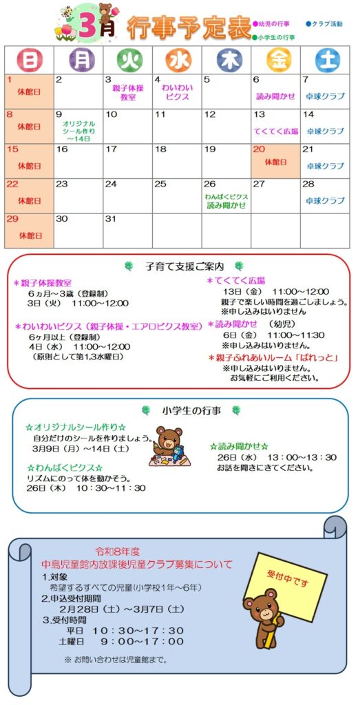中島児童館 3月の予定