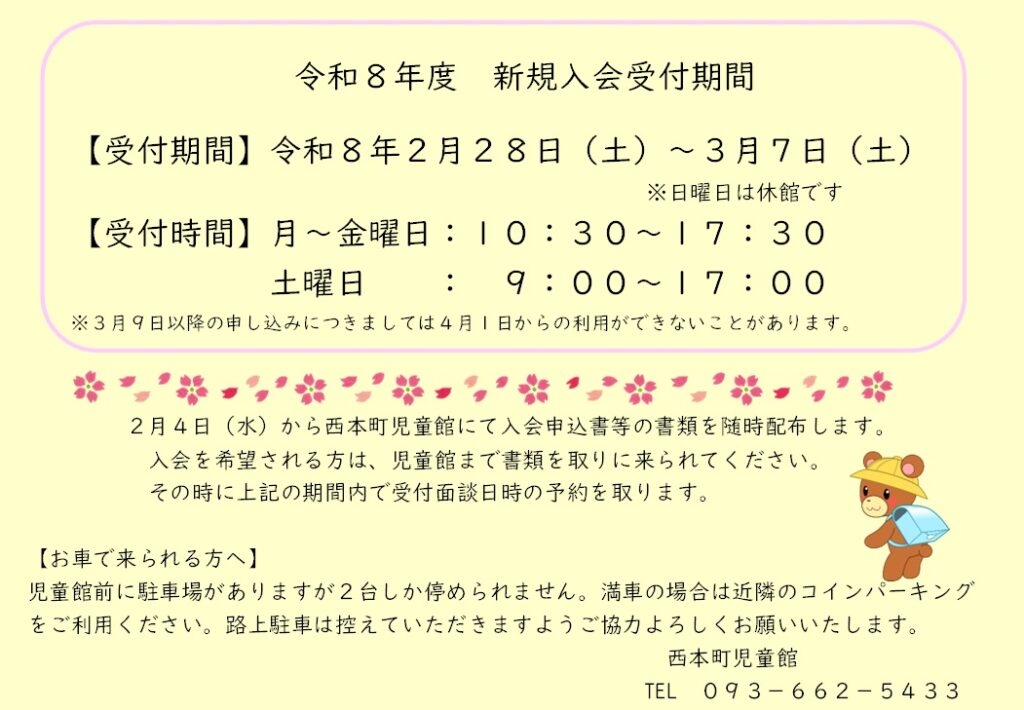 令和8年度 新規入会受付期間について