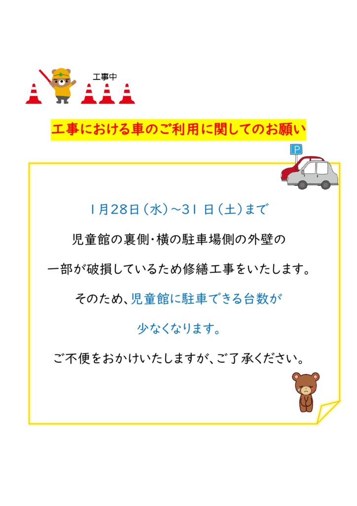外壁工事における駐車場のご利用について(高須児童館)