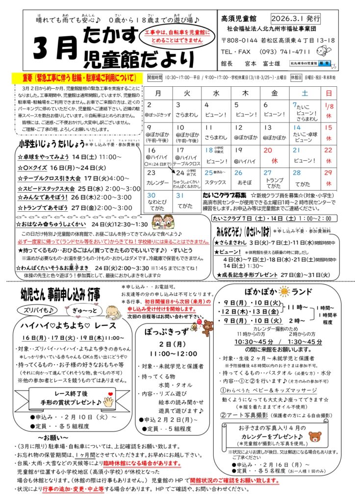 2026年3月 高須児童館行事予定