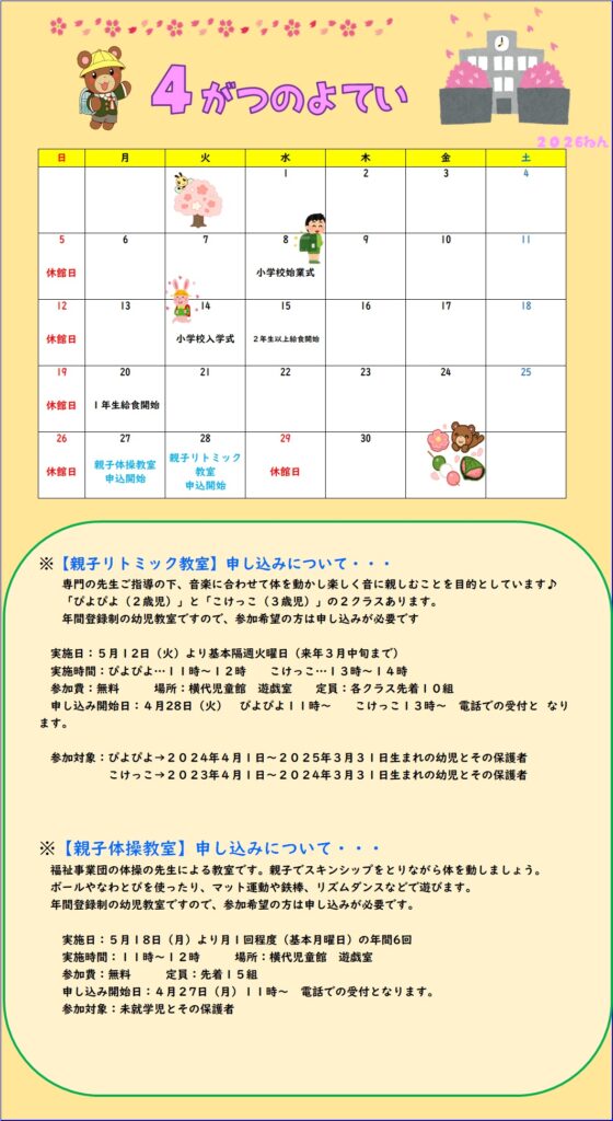 横代児童館 4がつの予定