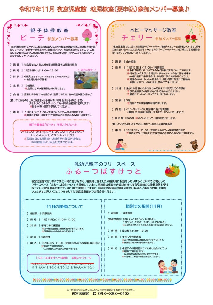 夜宮児童館 11月の幼児教室(要申込)参加メンバー募集