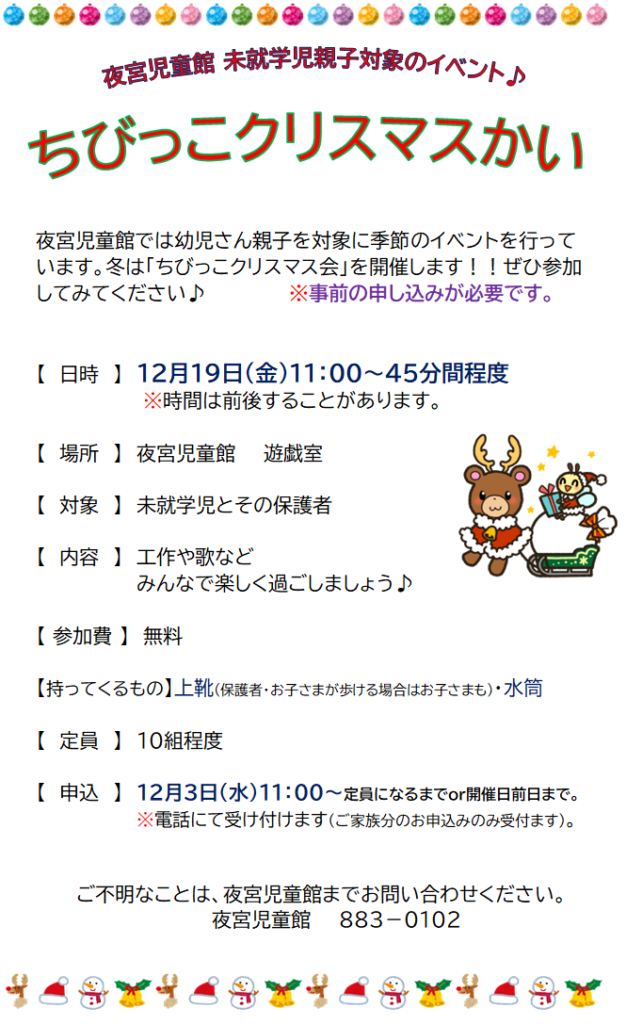 夜宮児童館 ちびっこクリスマス会開催のお知らせ