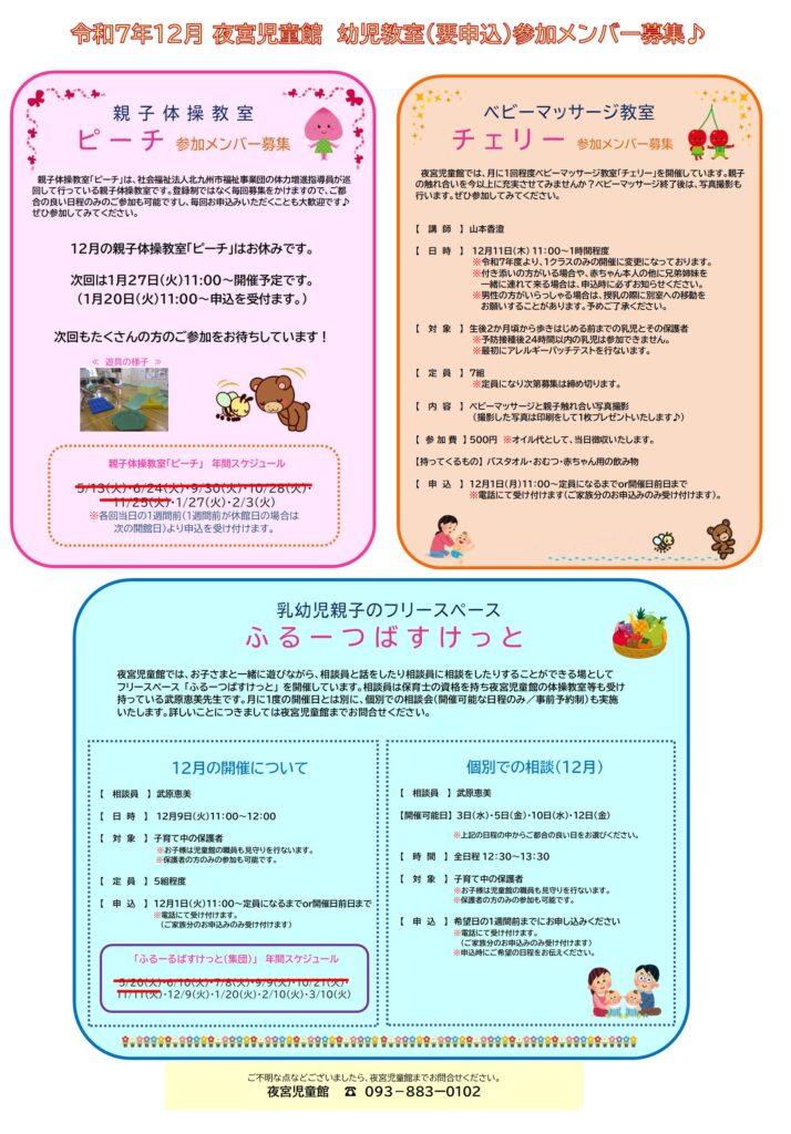 夜宮児童館 12月の幼児教室(要申込)参加メンバー募集